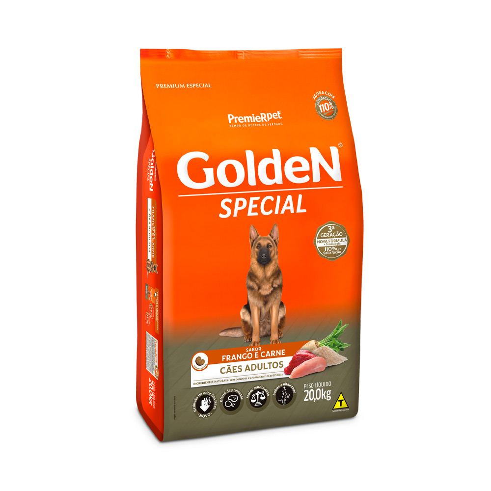 GoldeN Special Cães Adultos é um alimento completo e balanceado que proporciona aos cães adultos o nível ideal de todos os ingredientes que eles necessitam para uma vida longa e saudável.